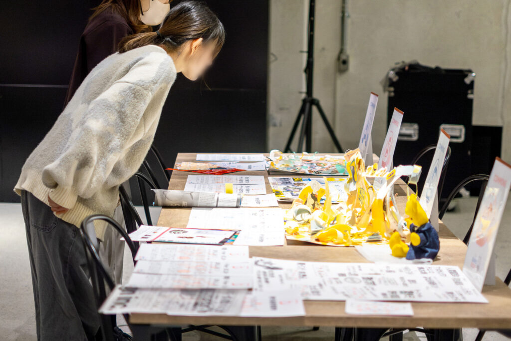 2025年10月に開催した社員総会「inc 万博 2025」でワークショップを通して作ったパビリオンも展示(inc万博2025のレポートはこちら)。「インクデザインらしさ」が形になったパビリオンをしげしげ見ながら話す楽しい時間でした。