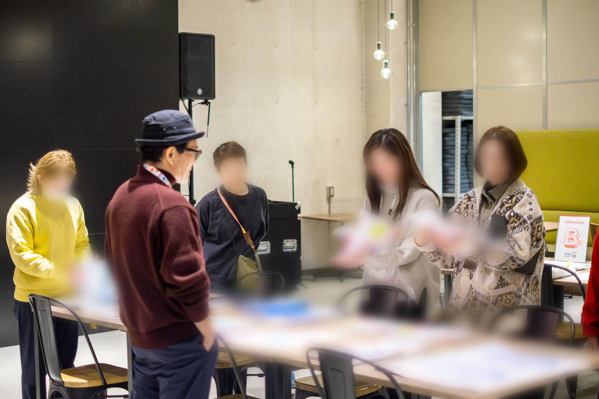 2025年10月に開催した社員総会「inc 万博 2025」でワークショップを通して作ったパビリオンも展示(inc万博2025のレポートはこちら)。「インクデザインらしさ」が形になったパビリオンをしげしげ見ながら話す楽しい時間でした。