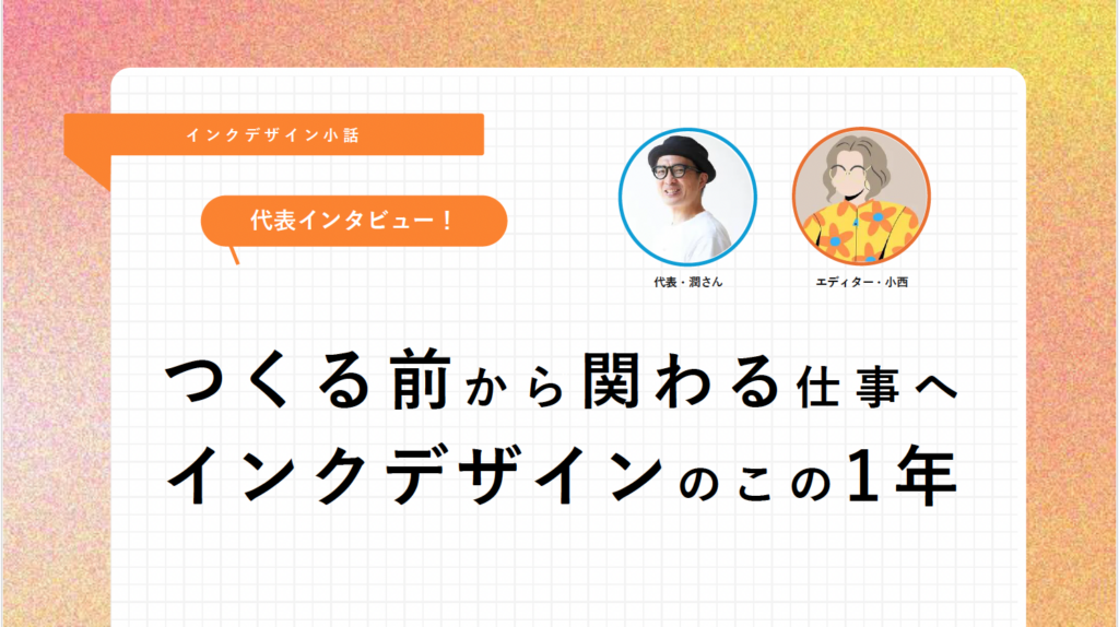 今回は新年にあたり、代表の潤さんへのインタビューを通して、インクデザインがいまどこに立っていて、その中にいる私たちエディターやデザイナーはどんな役割を担っているのか、そしてこれから担っていくのかを聞いてみました。
