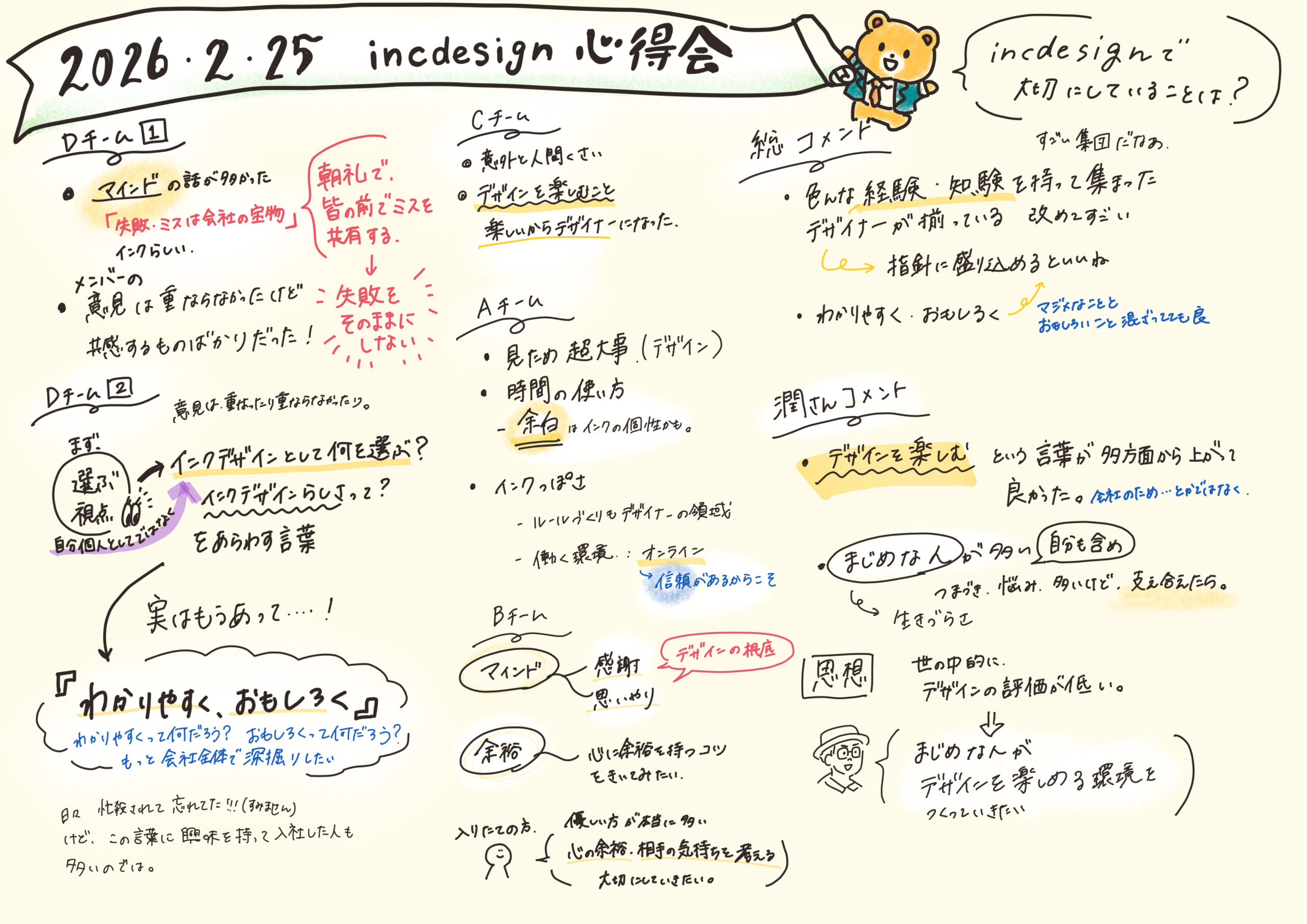 インクデザインのデザイナーたちの仕事への姿勢や考え方である「心得」を語り合い、共有するための良い機会となりましたので、一部始終をご紹介します!