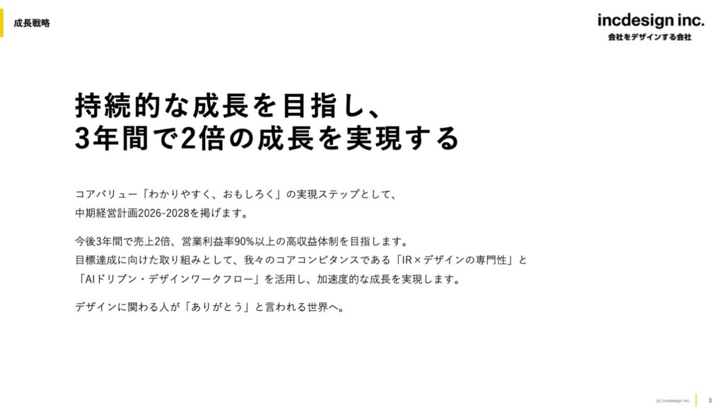 - 計画期間が明確に記載されている(例:「2026-2028年度 中期経営計画」)