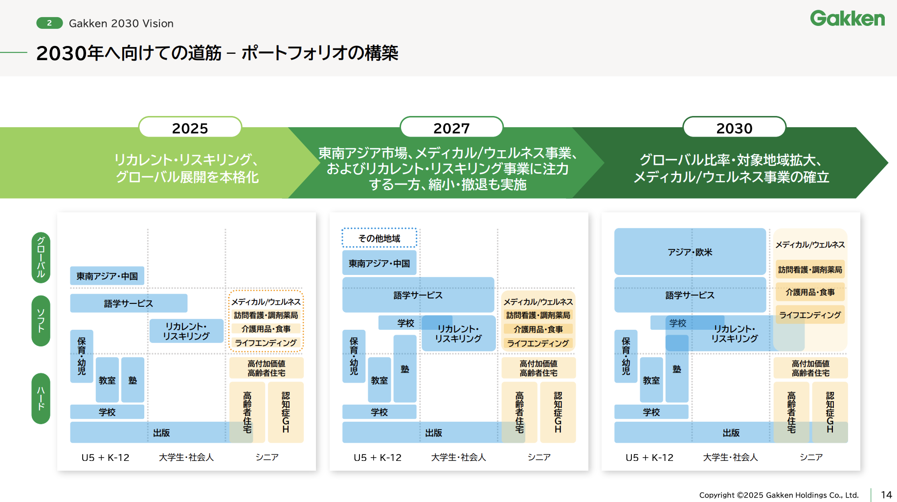 前回の中期経営計画「Gakken 2025 SHIFT」からさらに前進し、本中期経営計画では2030年の目指す姿とその道筋を具体的に示しました。