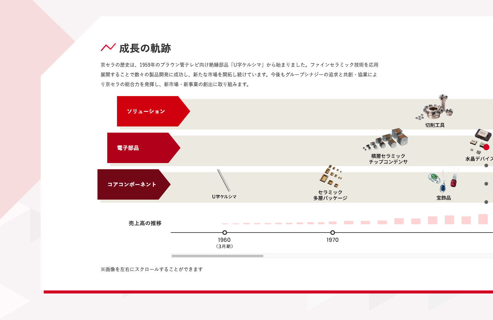 <img src="sales-graph.png" alt="売上高推移グラフ。2020年1,000億円から2024年1,500億円まで、年平均10%で成長。">