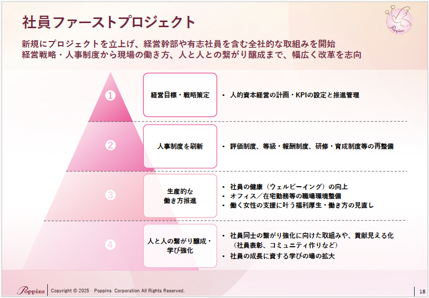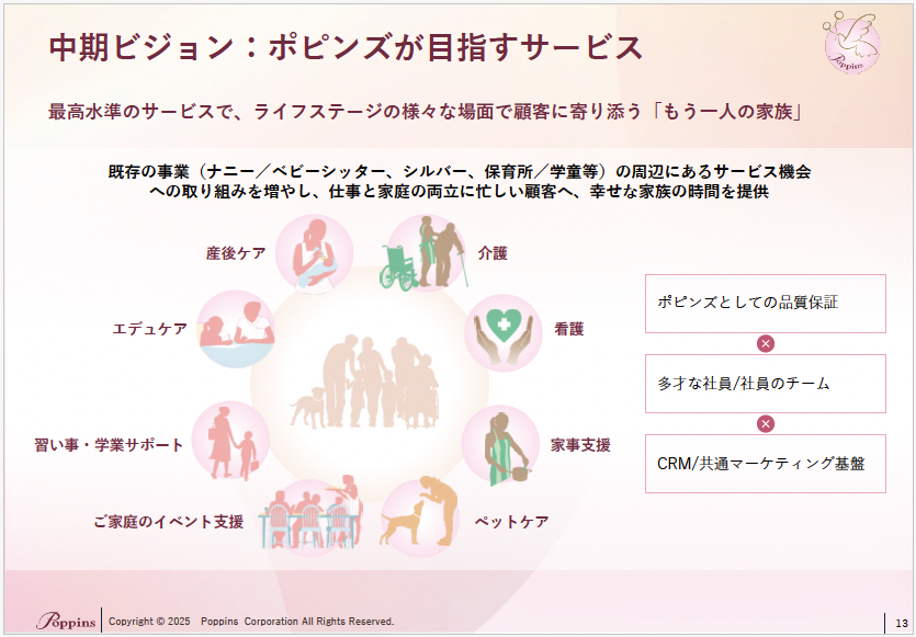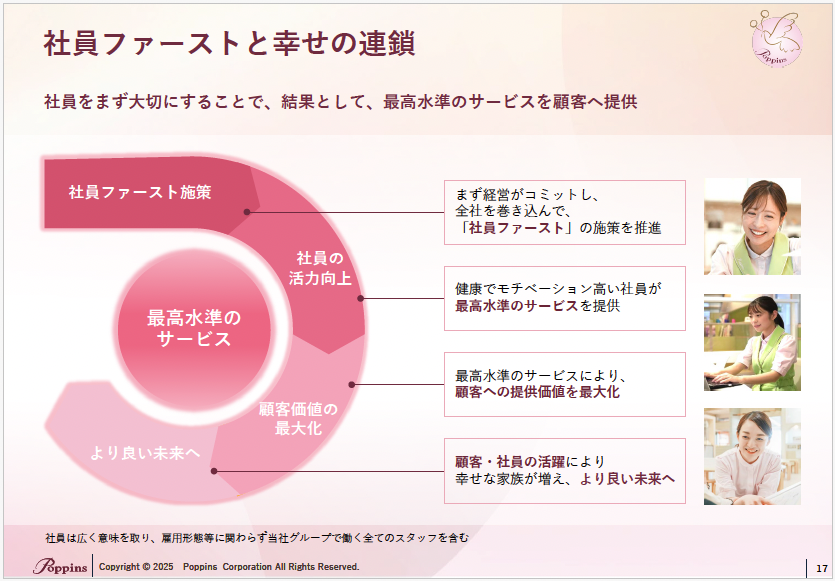 株式会社ポピンズは、「働く女性を最高水準のエデュケアと介護サービスで支援します。」をミッションとし、女性の活躍と子育て・介護の両立を支援しています。