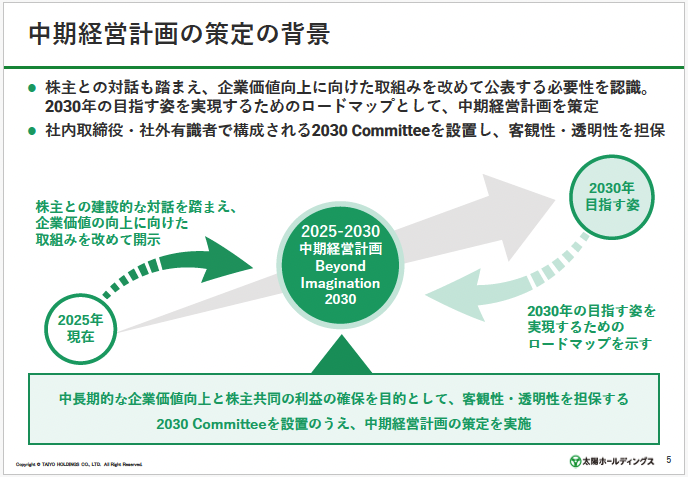 また、「2030 Committee」を設置した経緯なども開示することで、資本市場を強く意識した透明性の高い経営姿勢を訴求しています。