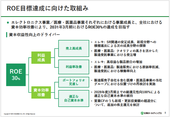 具体的な施策を明記することで、資本効率を強く意識した経営姿勢が訴求されています。