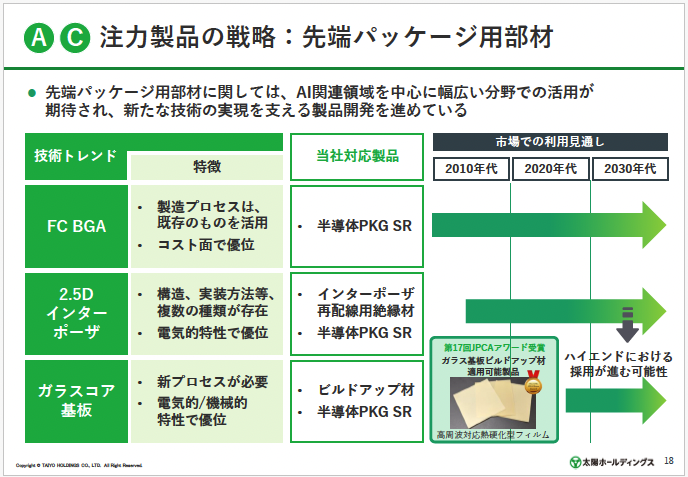 専門的な技術と市場の成長性を、イメージ図や時系列の表組みを用いて整理されていて、視覚的かつ直感的に伝わります!