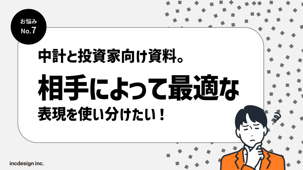 ❼中計と投資家向け資料。相手によって最適な表現をしたい!