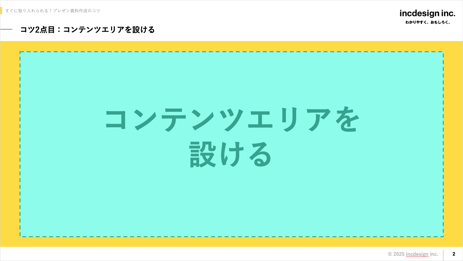 上下左右に十分な余白を取り、コンテンツエリアを設けましょう。