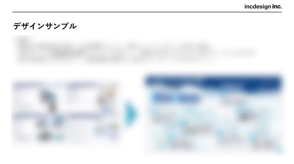 お客様の資料のブラッシュアップ案として、2ページ分のデザインサンプルを作成します。実際にデザインを適用した後のイメージを具体的にご確認いただけます。