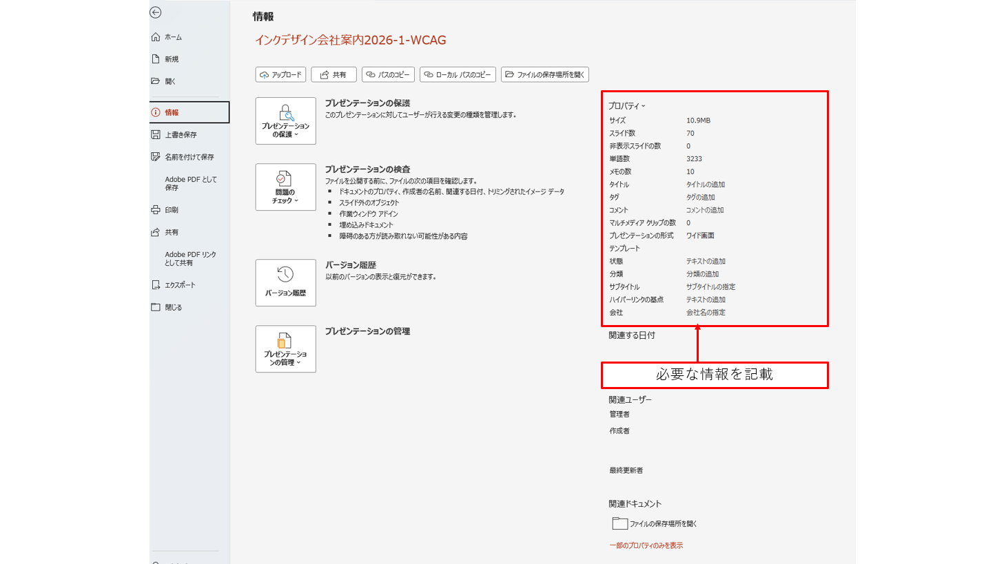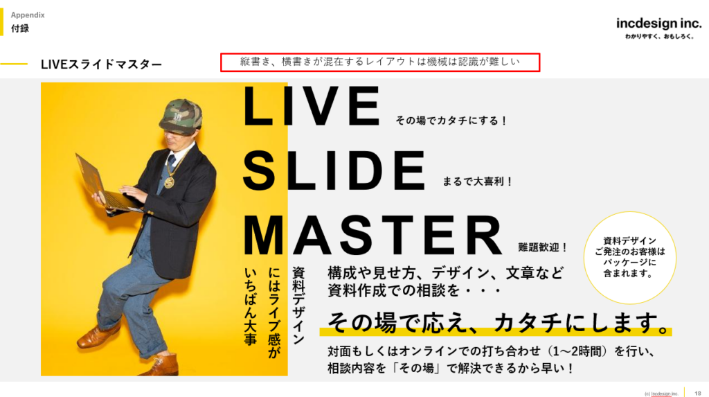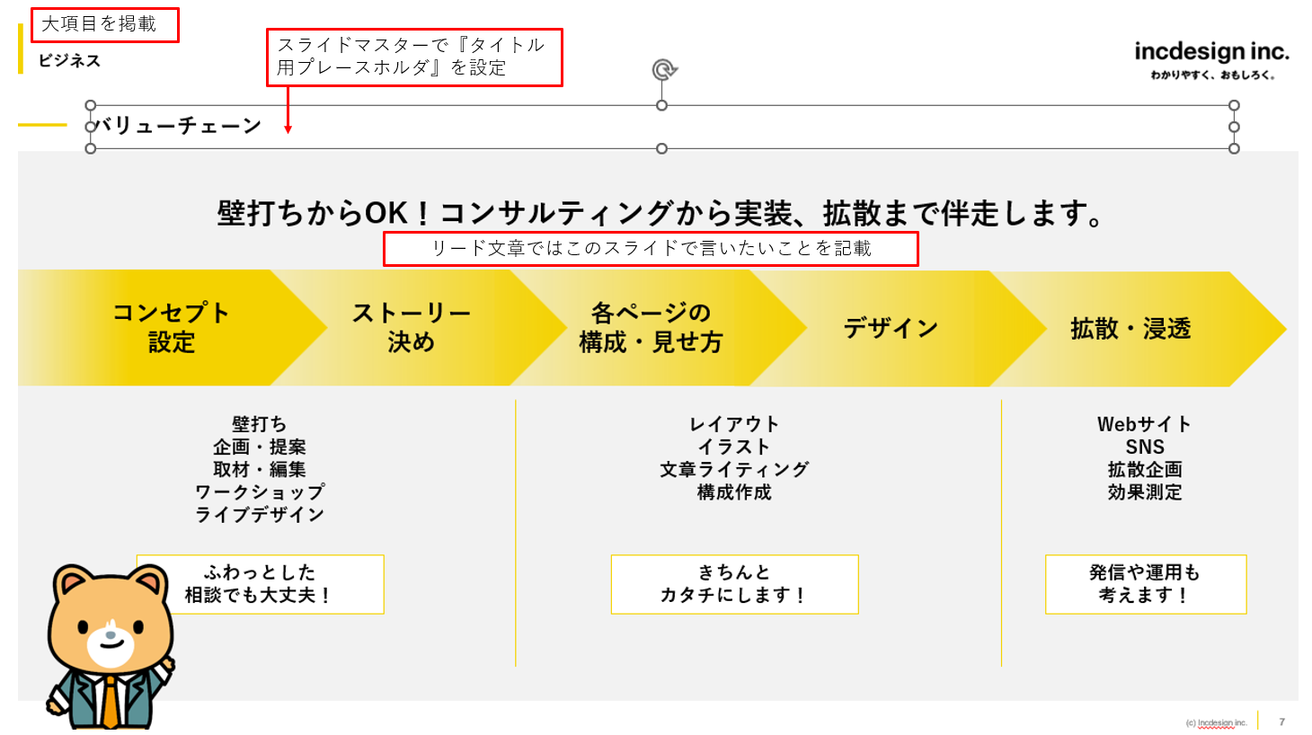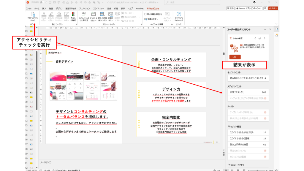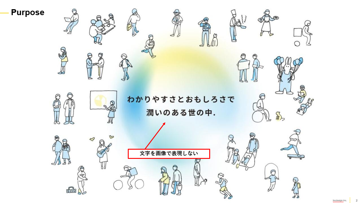 インクデザインが得意とするパワーポイントでのドキュメント作成を前提に達成基準ごとに説明をしたいと思います。