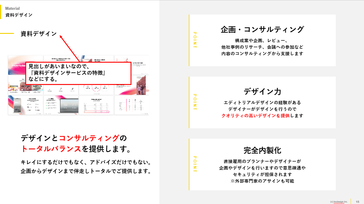 見出しや項目名を、内容が具体的に分かる表現にします。