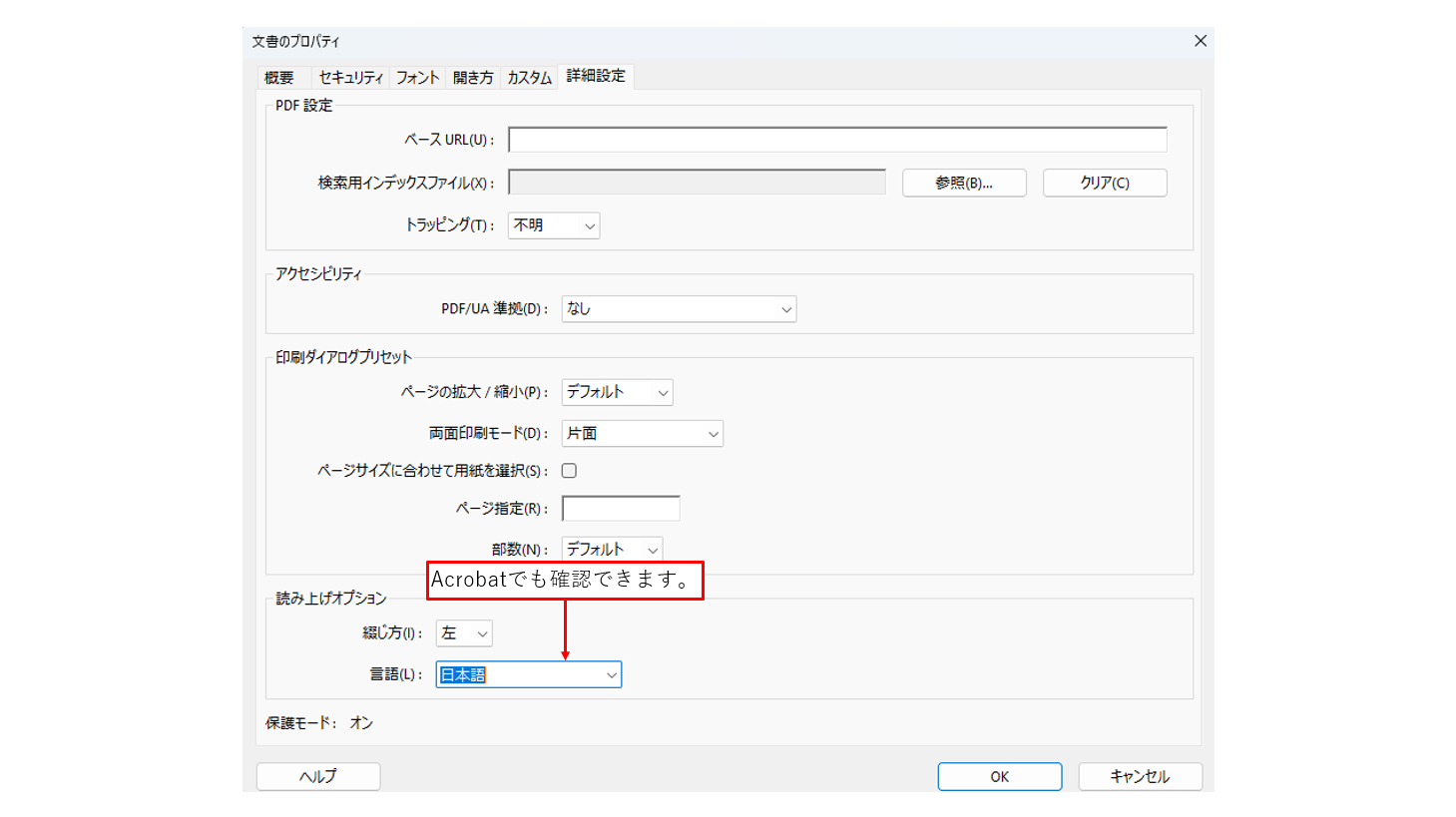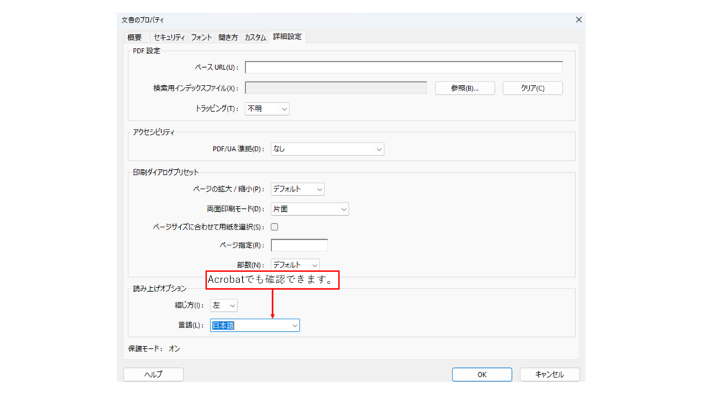 ※PDFに保存時に『ドキュメントの構造タグをアクセシビリティ用に追加』をチェックする必要があります。